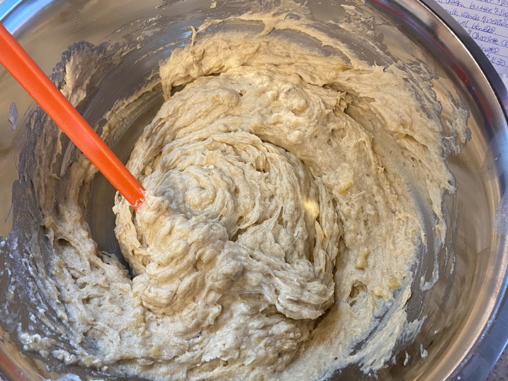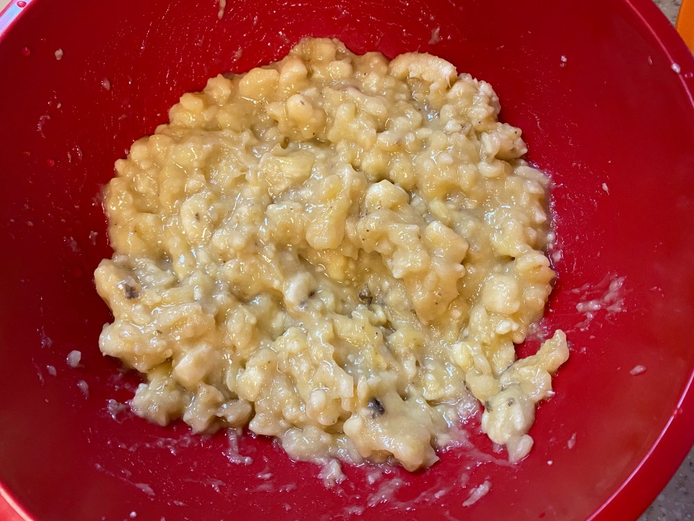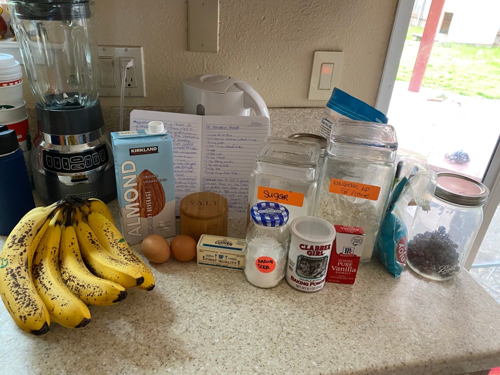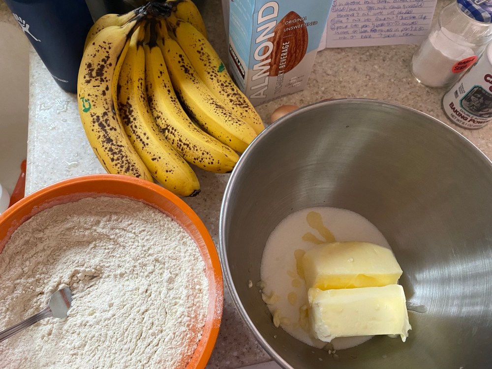 The only substitution I made on this one (besides the pan) was almond milk in place of standard milk. I also think I had 4-5 cups of bananas instead of the 3 that a doubled recipe would call for.