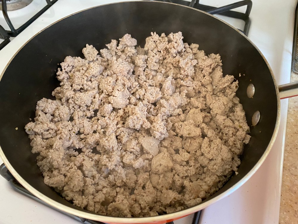 I cooked the turkey first while the oven preheated to 425. Then just later and repeat. I baked it for 40 minutes uncovered to experiment. If you have a top layer of mozzarella, it’s definitely better to cover it for the first 2/3 of the bake. Today I didn’t so I left it uncovered and the turkey really crisped up and was fantastic!