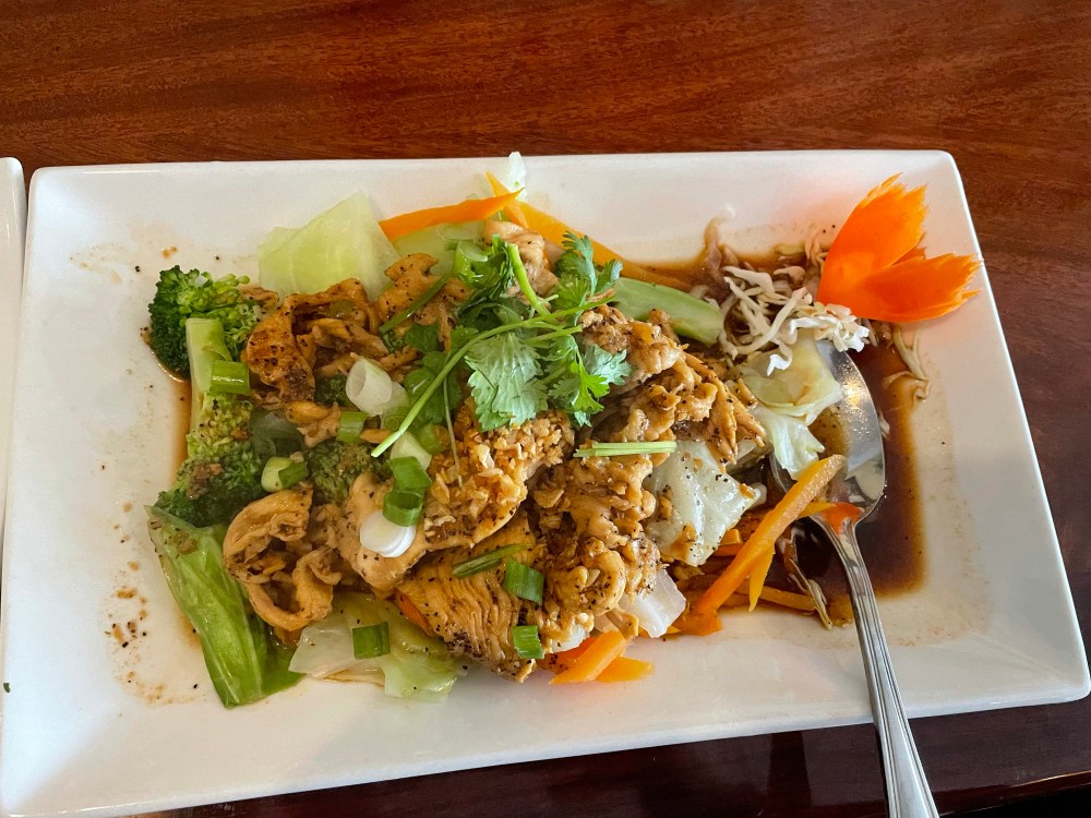 I had the ginger pepper chicken with a side of steamed rice. Very tasty and would definitely stop here again if I was visiting Calistoga!