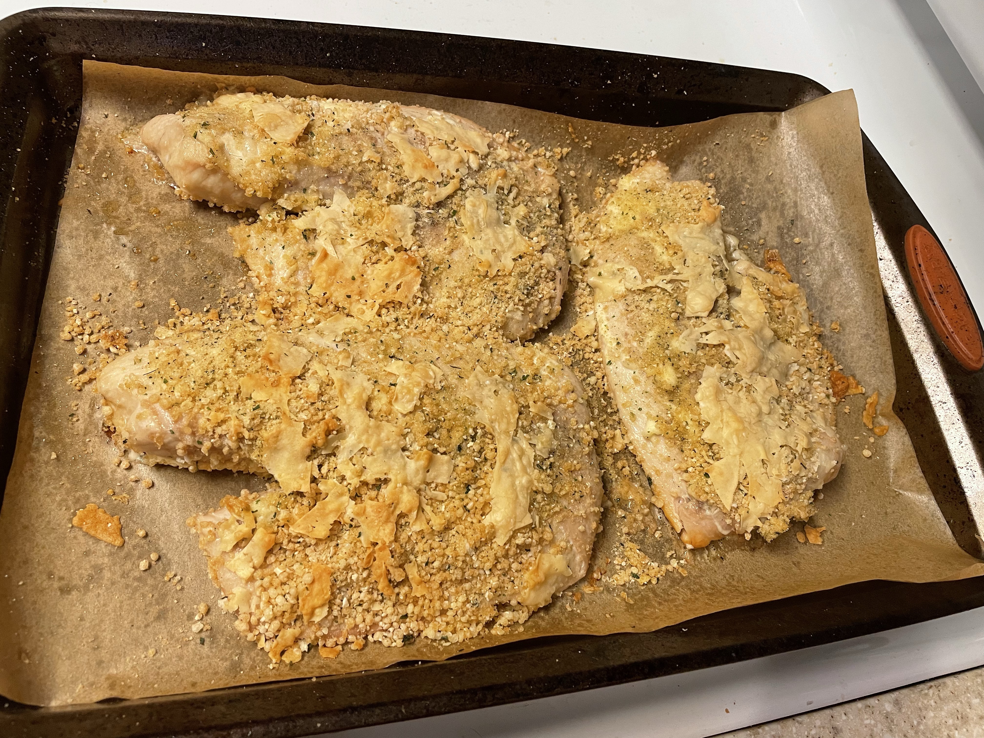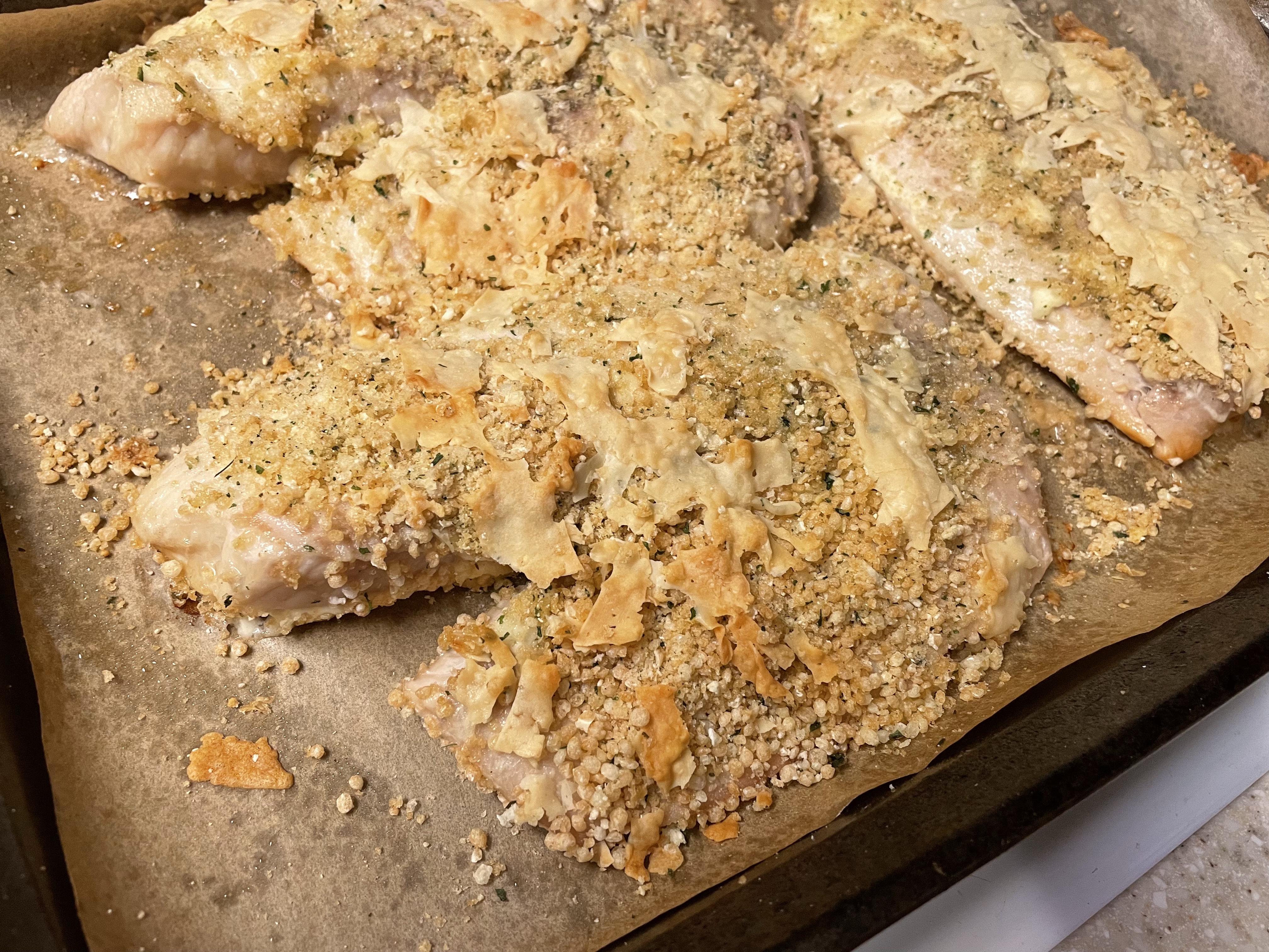 So up tonight, I made a parmesan crusted tilapia recipe from Testing Table. I’m not sure that I’ve ever used mayo as a binder, but it did work. If I made this recipe again, I would probably broil it for a few minutes to crisp up and remove all of the excess moisture. All-in-all pretty tasty and should reheat well in the oven for a midweek lunch.