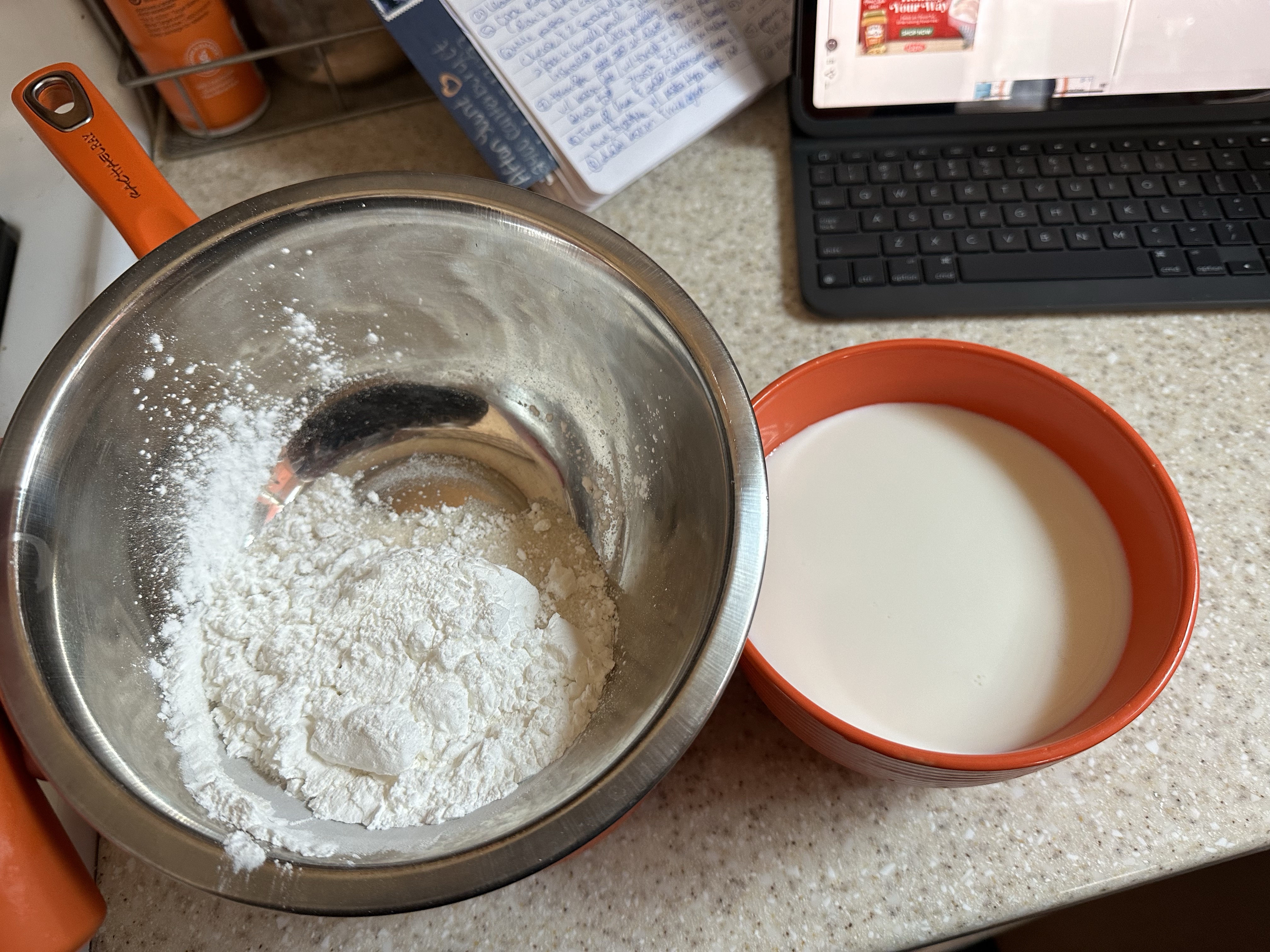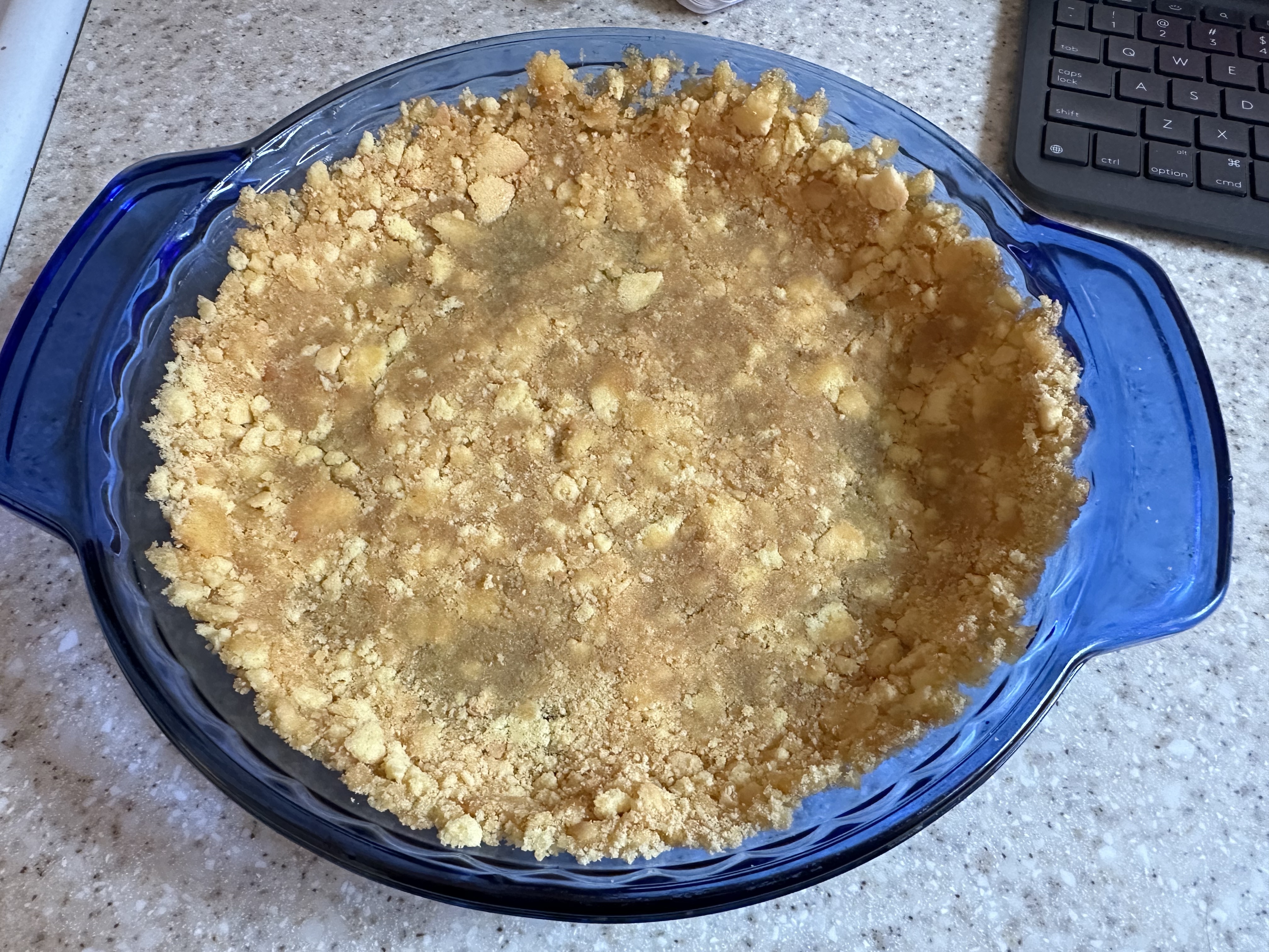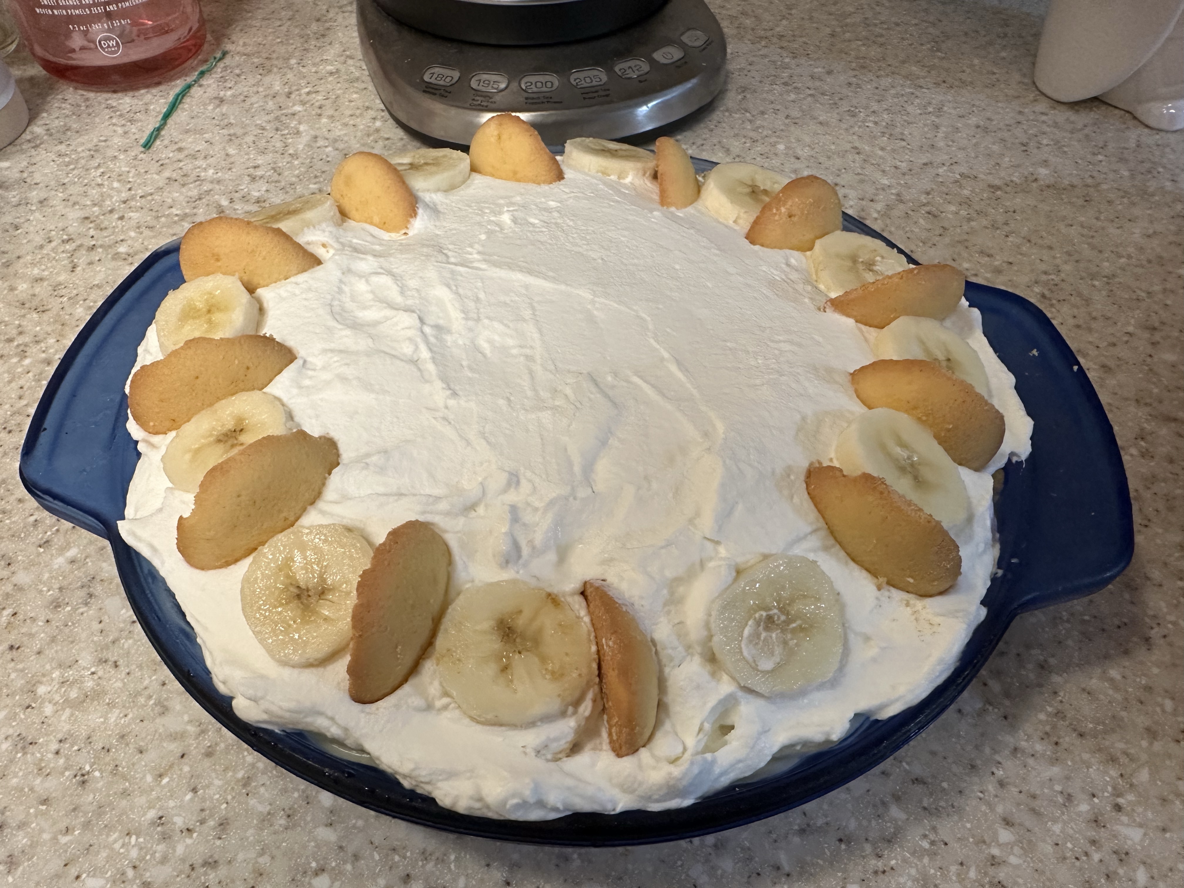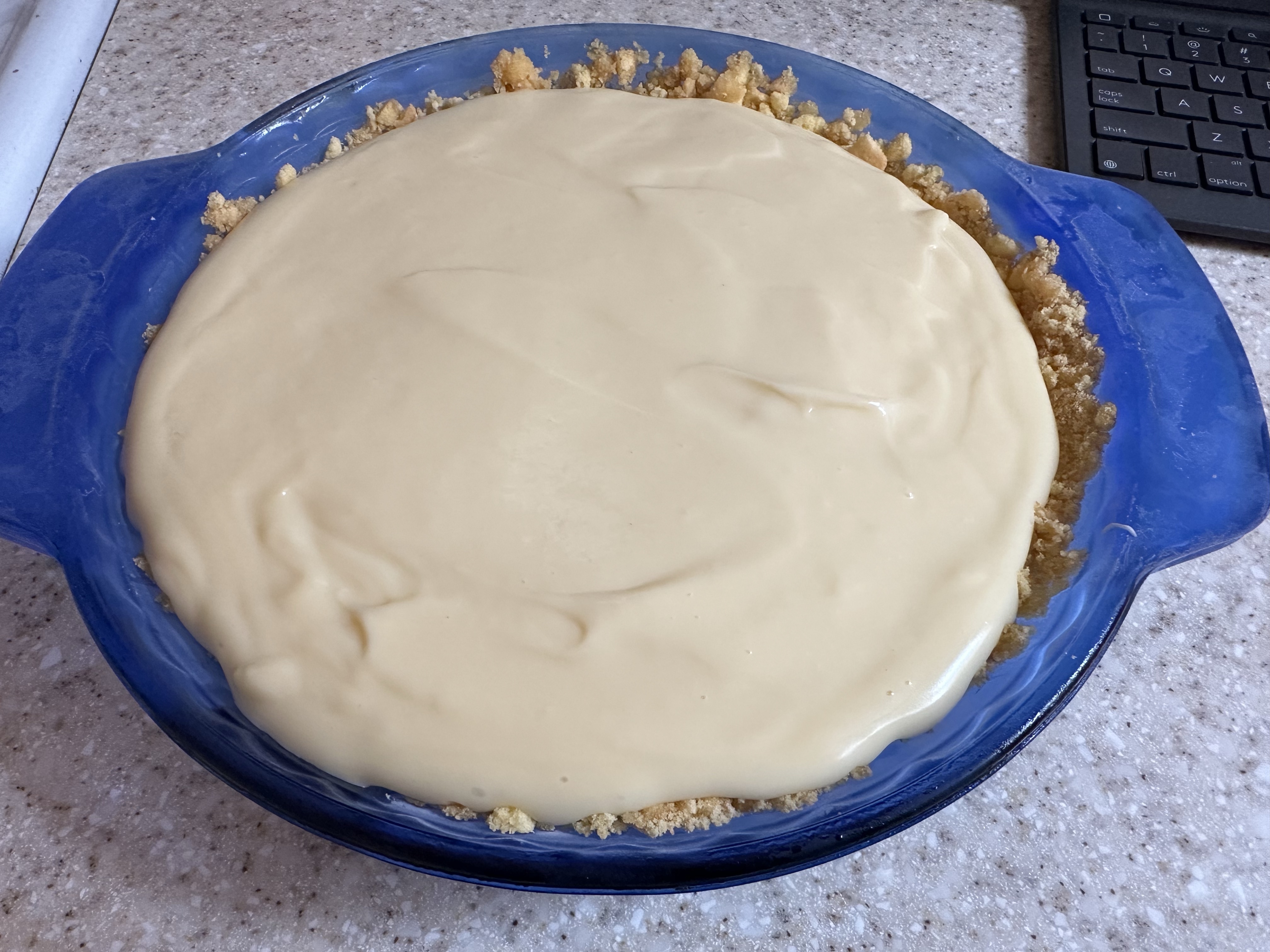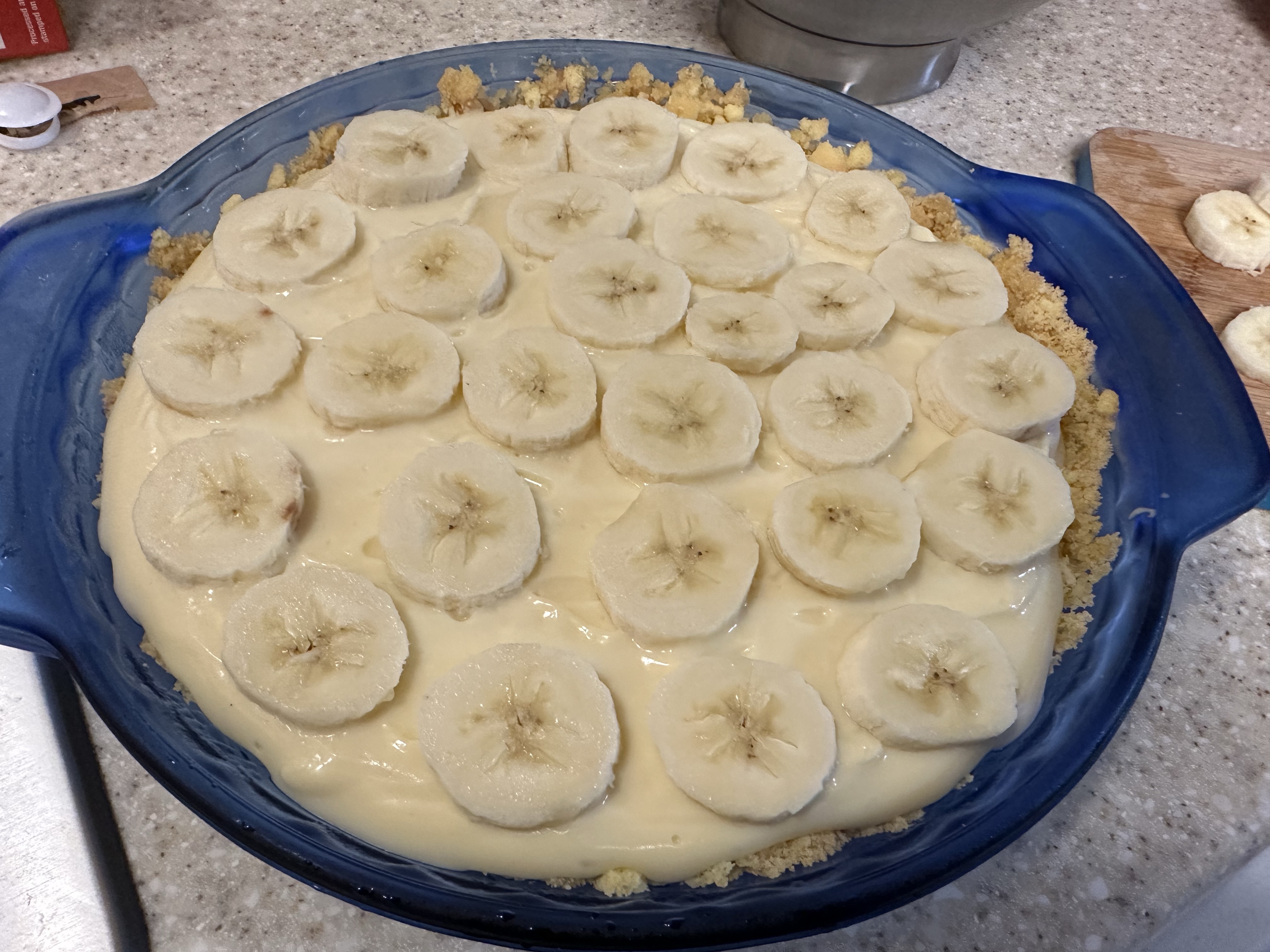 One of the things my dad is a huge fan of is bananas, so when searching for options ahead of time, a banana cream pie sounded great to him. So, off to the store for a whole lot of dairy we went. Rather than make our normal non-dairy substitutions, the only swap we had on that front was plant butter in place of standard butter. Otherwise, this one has milk and heavy cream so it’s not a super lactose intolerant winner.
