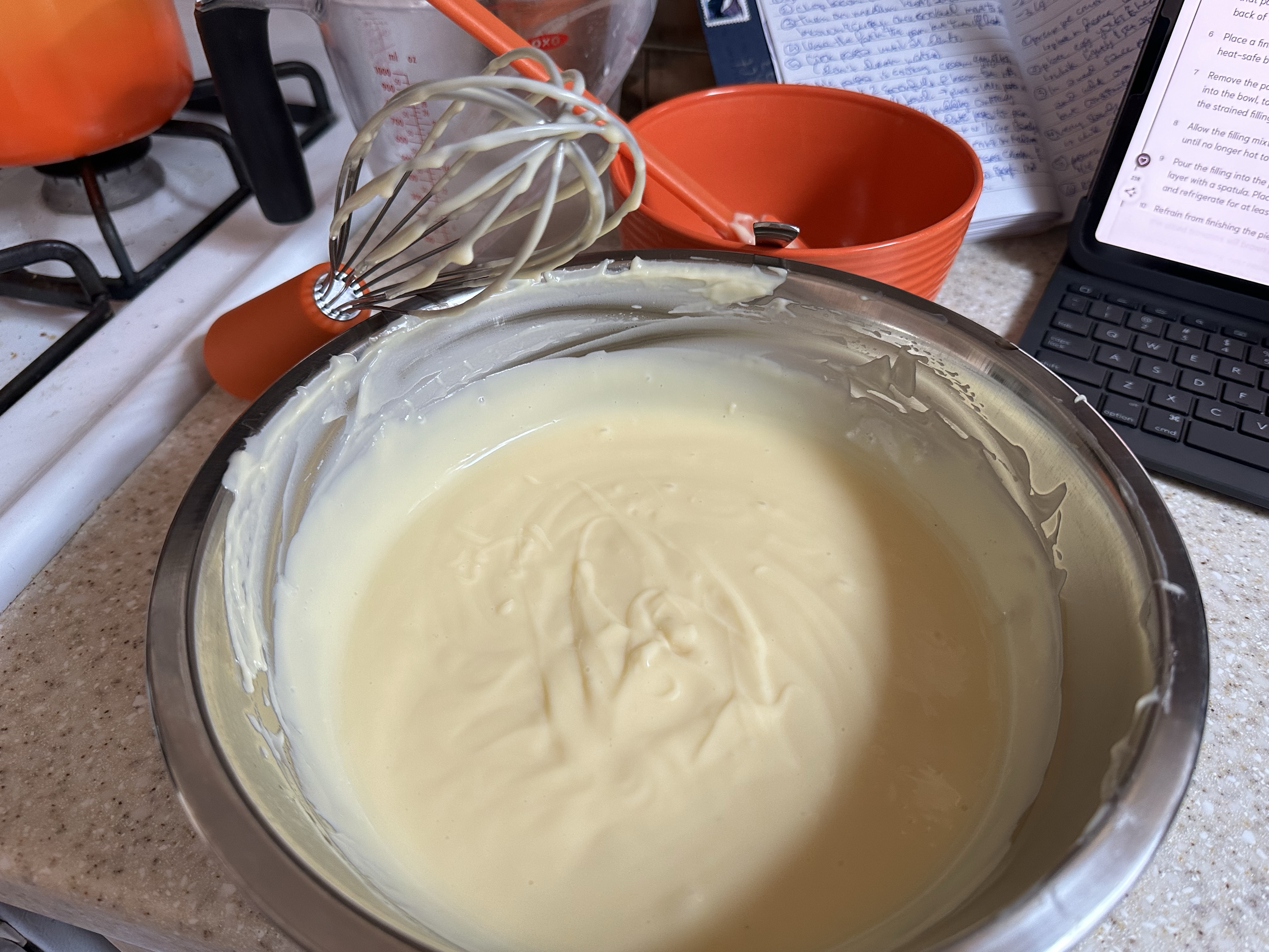 So, had we ever made a custard before? Absolutely not. Did we trust the process and stir like crazy resulting in a clump free perfect filling? You bet your butt we did. Probably one of the more stressful recipes I’ve made in a long while solely because one misstep can ruin the entire thing.